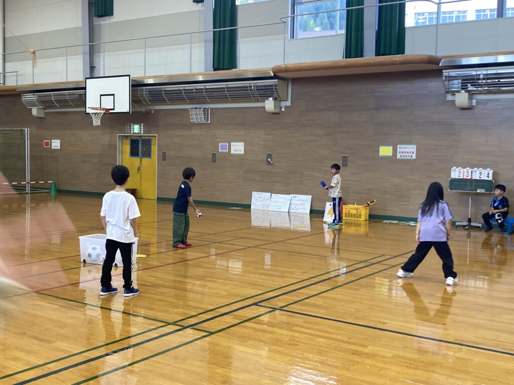 最後の活動‼️約1時間たっぷり試合をしました✨キック&ハンド&バットから、自分のやりたい攻撃を選び、そして、何点取るかも自分で決める!守備は、パスを回してアウトにする!おそらく大人はやってことのないベースボール遊びをしていま〜す😊詳しくは、お子さんに聞いてみてください✨