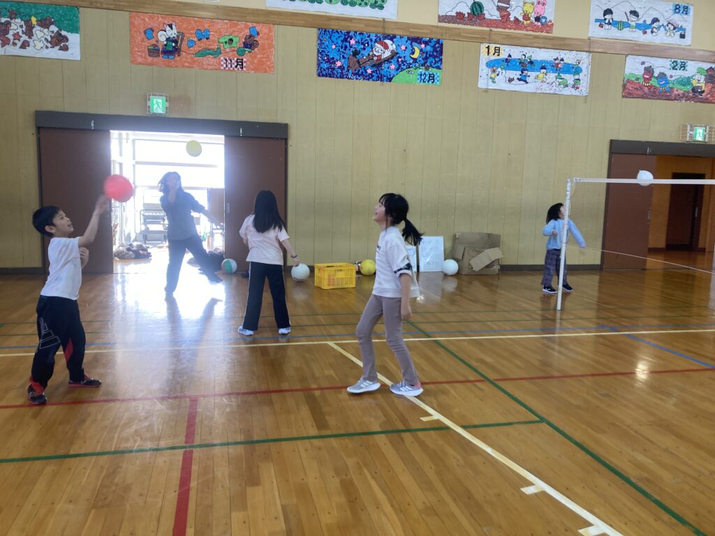 初めてバレーに親しむ子どもたち😊簡単なルールでバレーの基本の動きを学びました‼️来週も楽しもうね👍