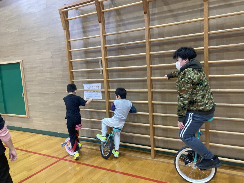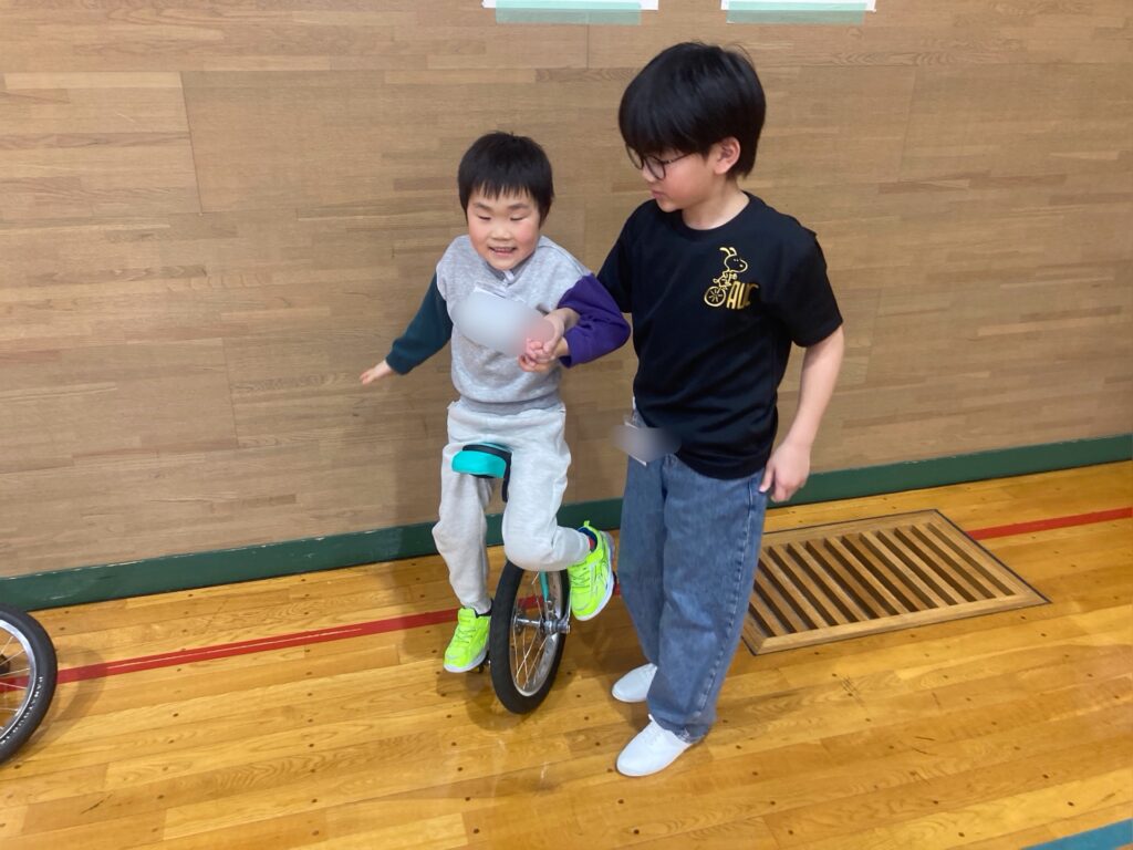 すごい🤩この感情から始まり!!!日頃から一輪車を乗っている子は、小学生先生と一緒に技のレッスン‼️初めての子は、小学生先生に優しく教えてもらいながら、初体験‼️