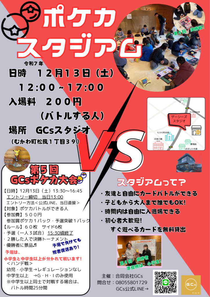 ⭐️GCsが主催のポケカイベントを開催して、約1年経ちました‼️‼️多世代、他地域交流の目的がしっかり達成されています😊👍小学生、中学生、大人がポケカを通してふれあい✨鵡川、穂別、厚真、安平、苫小牧、日高、新ひだか、札幌など、色々な地域からGCsスタジオに集まり、友達になる✨素晴らしいイベントとなっています👍次は、2、3月!?開催かな🤩たくさんのご参加お待ちしております‼️