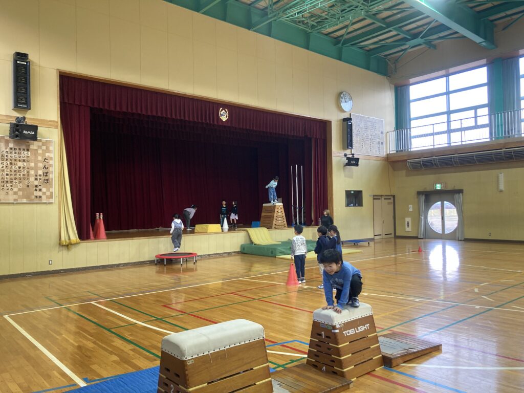 ⭐️鵡川地区1、2年「跳び箱あそび‼️」まるで跳び箱遊園地✨
